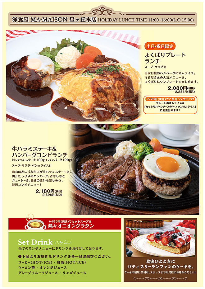 | 18 | 土 | ホリデーランチ※日替りお休み |